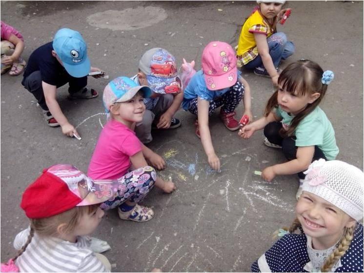 Презентация проектов, адаптированных в летний период 2016 г. С детьми проводились закаливающие процедуры, рисовали лето на асфальте цветными мелками.
